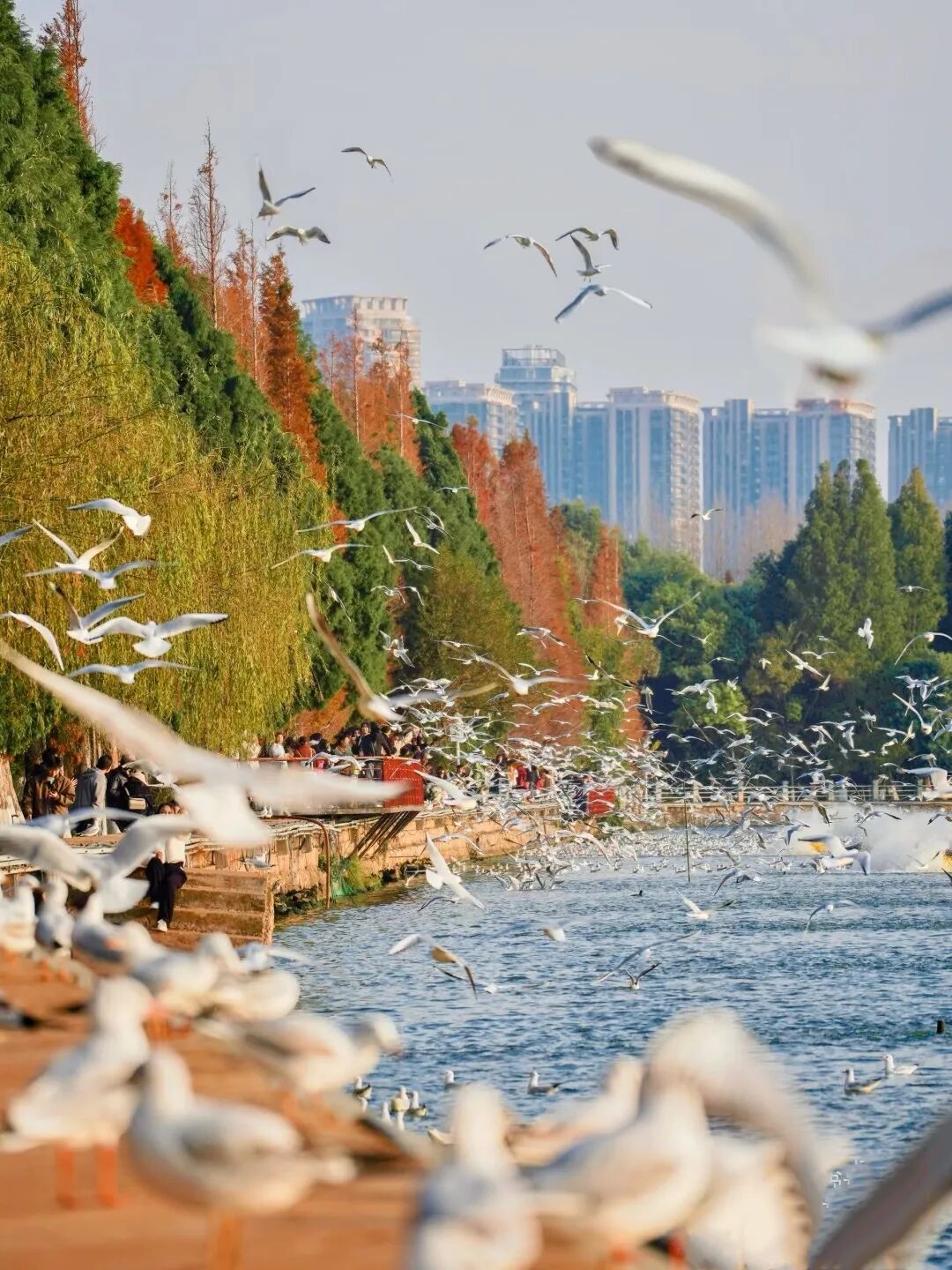 ສີມ່ວງຝັນຂອງດອກຈາກາລັນດ້າພຽງແຕ່ຫາຍໄປຈາກຖະໜົນຄຸນມິງ,ແຕ່ດອກເຈ້ຍທີ່ມີສີແດງເປັນສີຫຼັກຍັງຄົງປະກົດຢູ່.