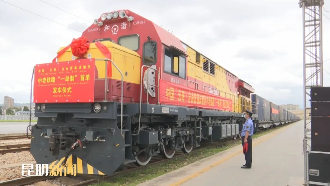 在位于昆明经开区(自贸试验区昆明片区)王家营的中铁联集昆明中心站内,运输叉车来回穿梭,批量货物整装待发。作为中老铁路国际班列起点站,这里承担着云南路网约70%的中老国际货运发送量。为了提高运输效率,昆明经开区和官渡区两区同海关、铁路等多部门协作发力,不断探索服务新模式,银行等金融单位各自发挥所长,助力通关便利。