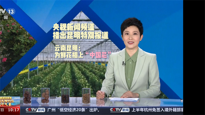7月7日,央视新闻频道(CCTV—13)特别节目《全面深化改革 中国式现代化万千气象》报道昆明市为鲜花插上“中国芯”。