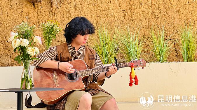ອາກີກໍາລັງຫຼິ້ນກີຕ້າ.ພາບໂດຍນັກຂ່າວທ່ານນາງຊາງກວນຢ້ຽນຈູນ