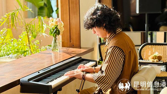除了咖啡师的身份,阿奇还是咖啡馆里的“音乐才子”。