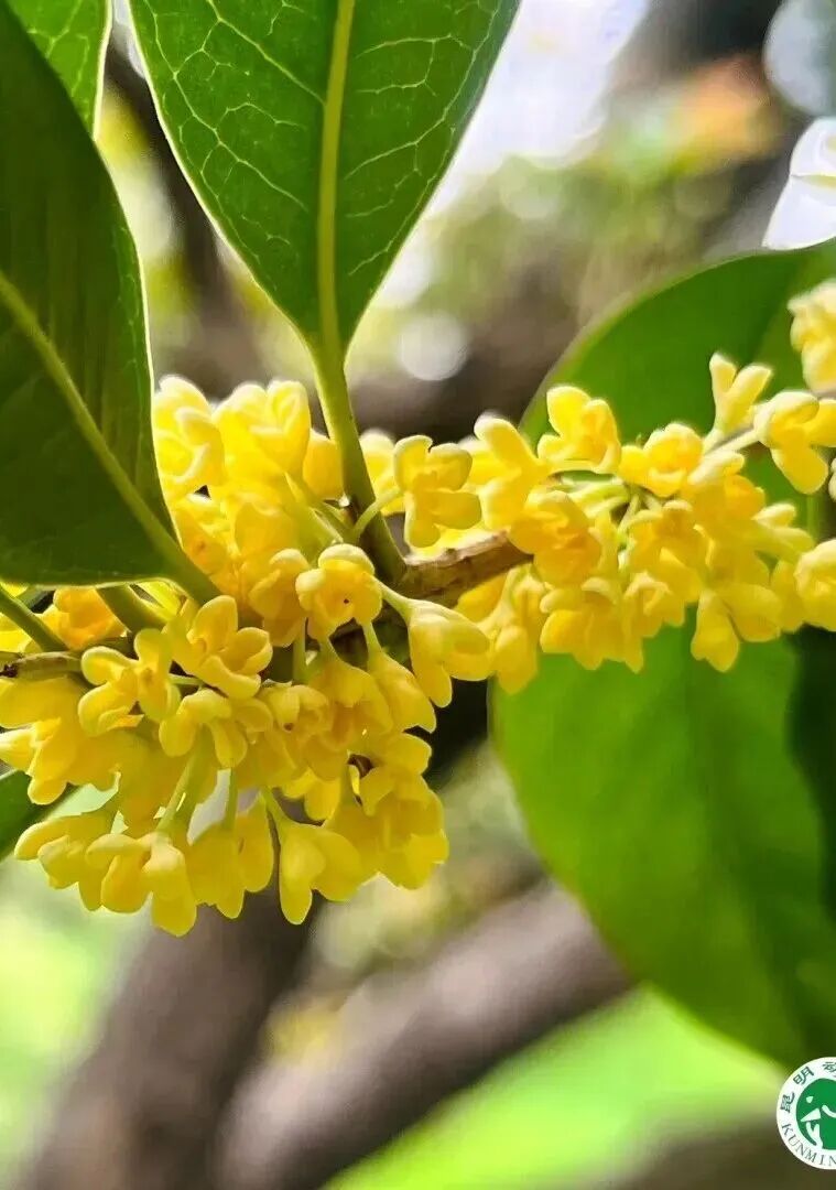 ດອກໄມ້ເຫຼົ່ານີ້ໄດ້ເຊື່ອງໄວ້ໃນໃບສີຂຽວ,ບາງທີ່ແມ່ນສີທອງຄໍາ(Osmamthus fragrans var. thunbergii),ສີຂາວ(Osmanthus fragrans var. latifolius) ແລະ ສີແດງ(Osmanthus fragrans var. aurantiacus),ໃນລະດູໃບໄມ້ປົ່ງ, ທົ່ວນະຄອນຄຸນມິງເຕັມໄປດ້ວຍກິ່ນຫອມດອກໄມ້.