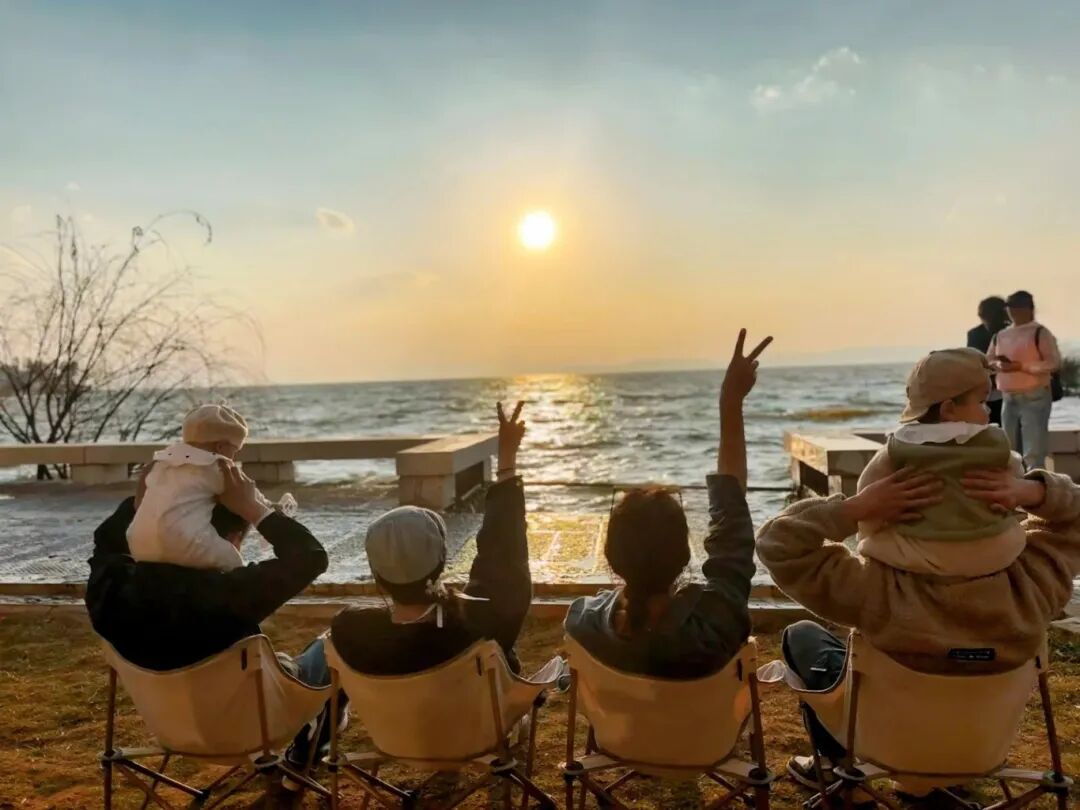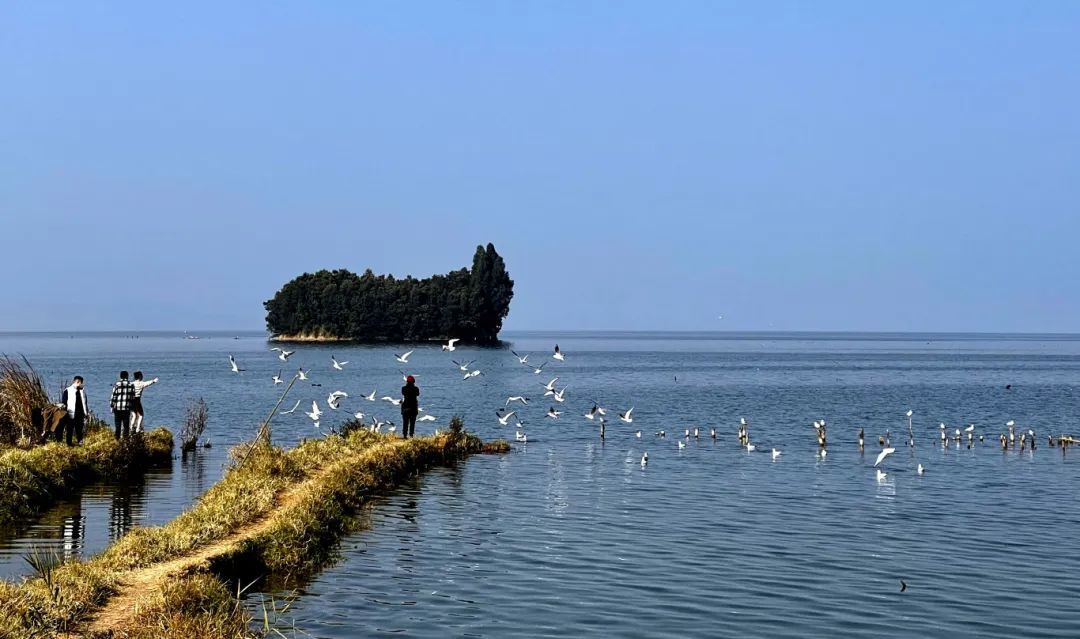 南滇池“鲸鱼岛”,也是观鸥好去处,这里的景色特别出片。随着客流增加,滇池边的小渔村也推出不同的旅游产品,帐篷烧烤、水上餐厅农家菜,游玩之余饱餐一顿,非常惬意。