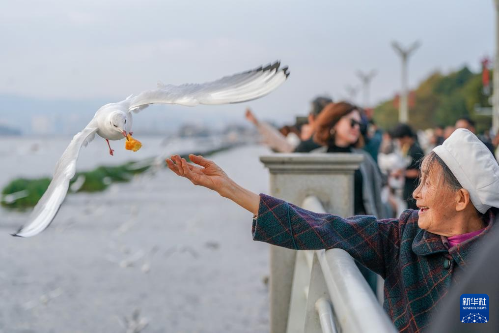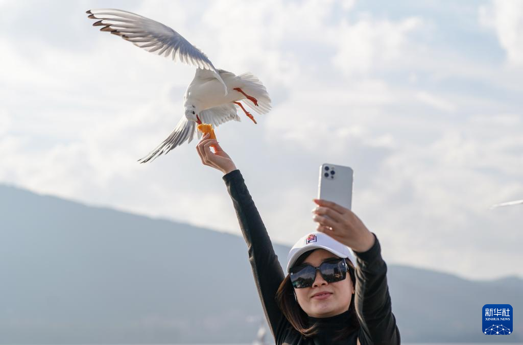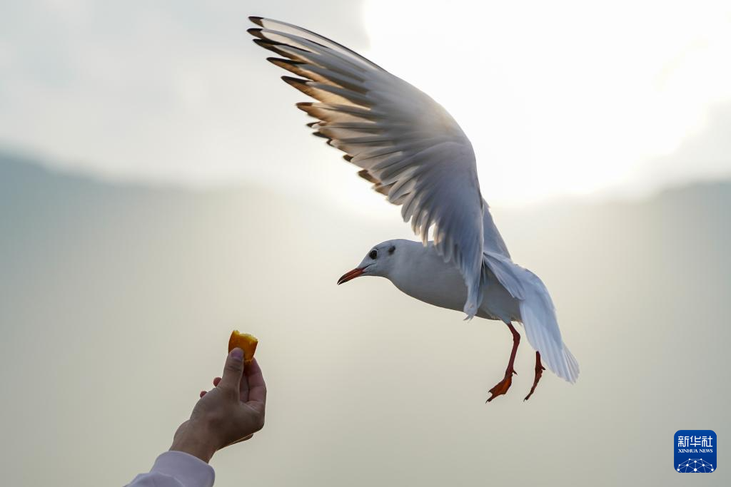 近日,红嘴鸥如往年一样从西伯利亚等地飞抵云南昆明,成为“春城”一道灵动的风景,吸引市民与游客前往观赏、互动。