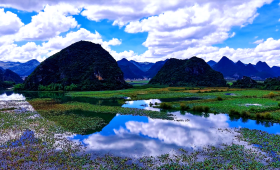 ເມື່ອມາຮອດທ້າຍລະດູໃບໄມ້ລົ່ນ,ພູເຂົາແລະແມ່ນ້ຳຂອງເຂດຜູເຈີເຮີຍເມືອງຫວັນສານແຂວງຢຸນນານ ໄດ້ເປັນຮູບແຕ້ມຫມຶກທີ່ມີຊີວິດຊີວາ.