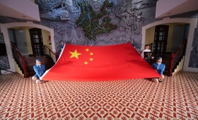 ຫໍພິພິທະພັນທາງລົດໄຟຢຸນນານວາງສະແດງທຸງຊາດທີ່ຖືກຊັກຂຶ້ນຢູ່ສະໜາມຫຼວງທ່ຽນອ່ານເມີນ